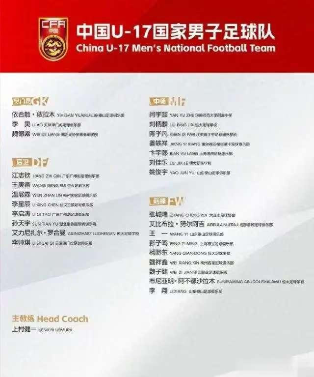 在2025年2月27日,中国足协公布了中国U17男足国家队的新一期集训名单,目的是为了做好2025年4月份U17亚洲杯决赛阶段的备战工作,本期U17国足名单如下: